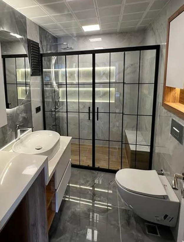 80×120, 90×120, 80×130,90×130 gibi ölçülerde üretilen dikdörtgen duşakabin sistemleri, sipariş üzerine, banyonuzdaki bir alana tam oturacak şekilde de ölçülendirilerek üretilebilmektedir. Genellikle uzunlamasına alanı olan banyoların son kesimlerini doldurmak için kullanılır. Bu şekilde olmayan banyolarda ise fazla yer kapladığı için tercih edilmez.